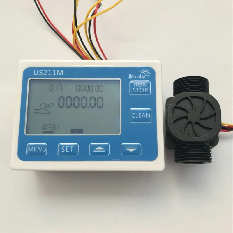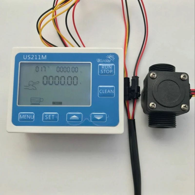 ORIGINAL US211M Flow Meter Totalizer Flow Measurement with Flow Sensor USN-HS43TAT with Temperature Sensor N